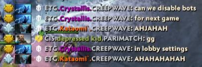 После прописанного “gg” от CIS Rejects игроки Entity продолжили глумиться над противниками. Керри коллектива Ремко Crystallis Аретс обратился с просьбой “отключить ботов в лобби”.