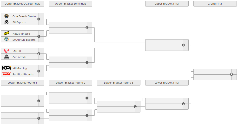 в матчах четвертьфинала верхней сетки 5MOKES сыграют против Aim.Attack, KPI встретятся с FunPlus Phoenix, One Breath Gaming проверит силы B8, а NaVi поборются с SMARACIS.
