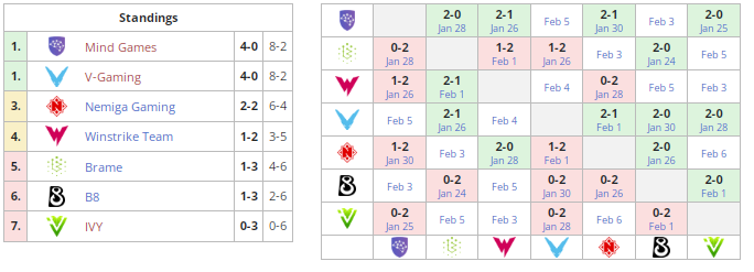В следующем матче B8 встретится с лидером группы В — Mind Games. IVY поборется с Winstrike Team. Оба матча запланированы на 3 февраля.