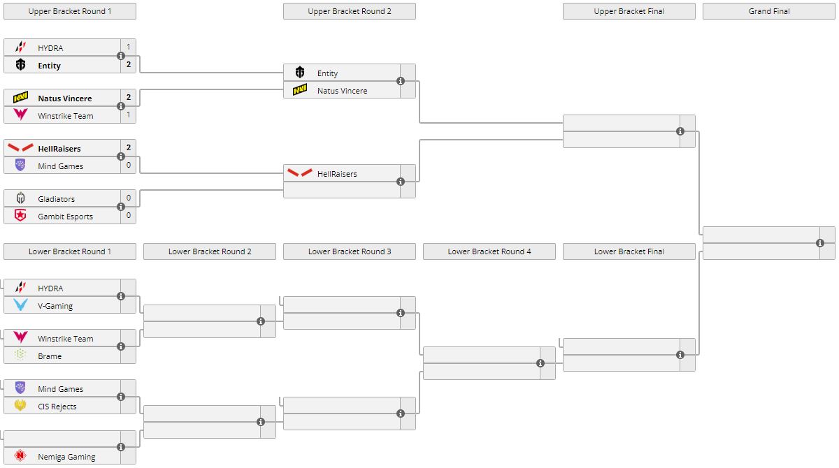 Победа позволила Entity выйти во второй раунд, где коллектив сыграет с NaVi. Hydra упала в нижнюю сетку и сразится с V-Gaming на вылет с турнира.