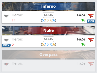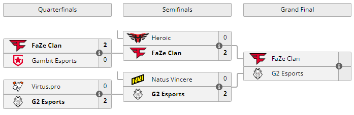 В полуфинале Intel Extreme Masters Season XVI – Katowice состав Heroic со счетом 0:2 уступил FaZe Clan и покинул турнир, заработав $80 000 призовых.