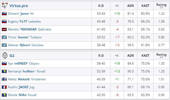 Virtus.pro покинула турнир на итоговом 5-6 месте. G2 вышла в полуфинал, где сыграет с NaVi.