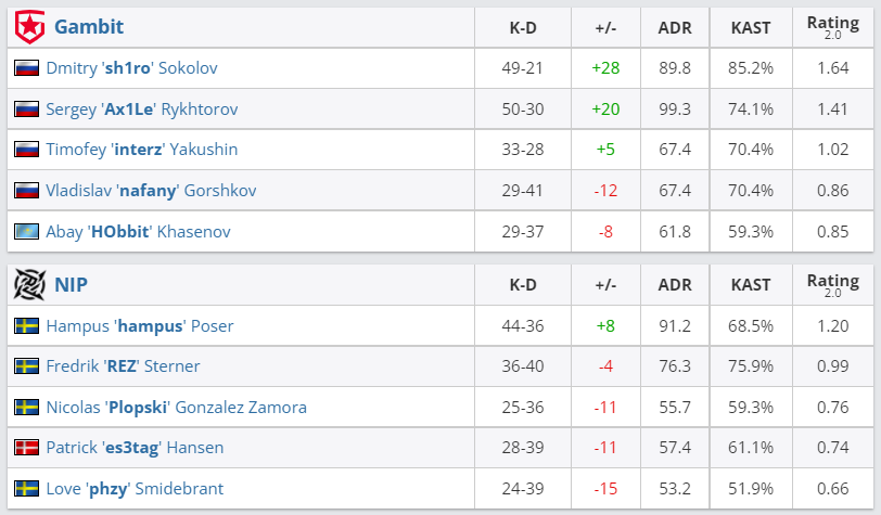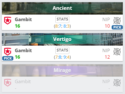 В матче нижней сетки группы “А” Intel Extreme Masters Season XVI – Katowice Gambit Esports со счетом 2:0 переиграла Ninjas in Pyjamas и вышла в плей-офф турнира.