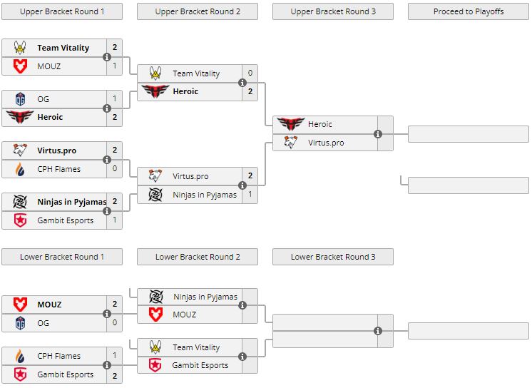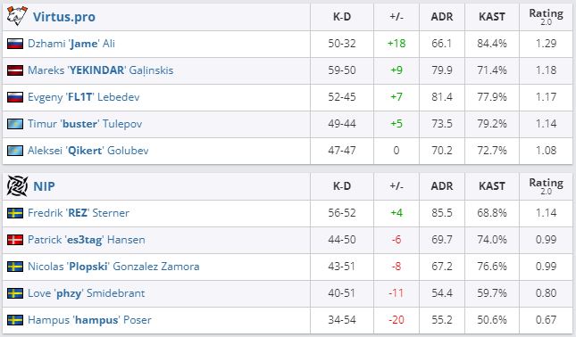 В параллельном матче Virtus.pro в трех картах справилась с NiP (Overpass — 16:9, Vertigo — 12:16, Ancient — 16:8). Шведский коллектив отправился в нижнюю сетку.