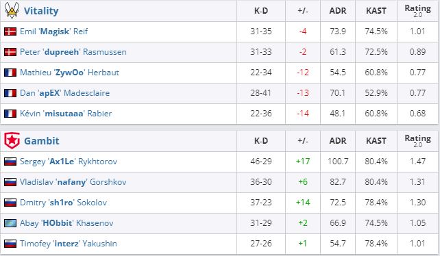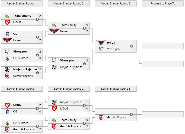 Vitality вылетела с турнира, заняв итоговое 9-13 место. Gambit 20 февраля сразится с победителем пары NiP — MOUZ.