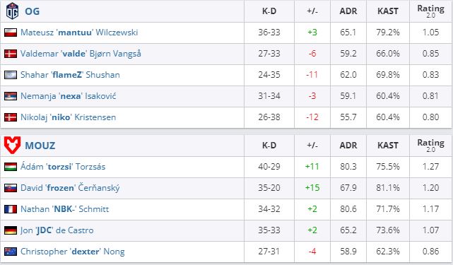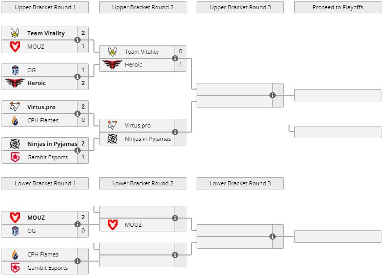 В параллельном матче все той же группы “А” OG уступила MOUZ (0:2) и вылетела с турнира (Nuke — 12:16, Ancient — 9:16).