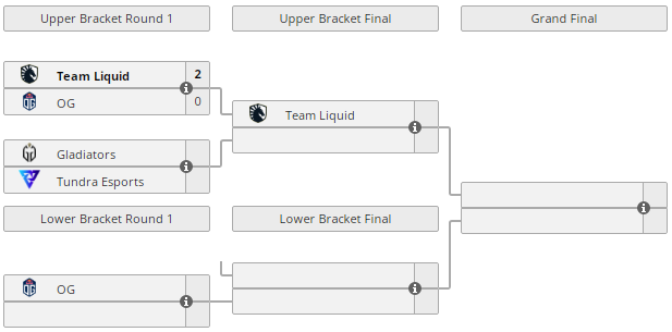 Liquid ожидает победителя пары Gladiators/Tundra в финале верхней сетки.