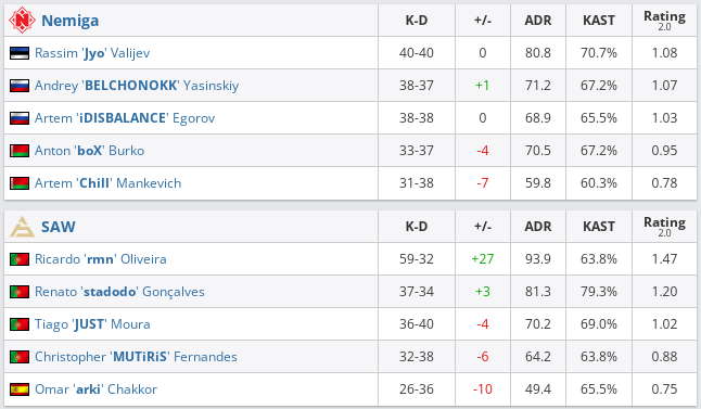 Nemiga не сумела одолеть SAW в матче групповой стадии Thunderpick Bitcoin Series. Белорусский тег не забрал в актив ни одной карты — 0:2 (Dust 2 — 13:16, Inferno — 13:16).
