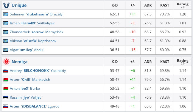 Белорусская команда Nemiga Gaming выбила Team Unique с Malta Vibes Knockout Series #6. Итоговый счет матча 1/8 — 2:1(Inferno — 16:13, Overpass — 9:16, Mirage — 16:5).
