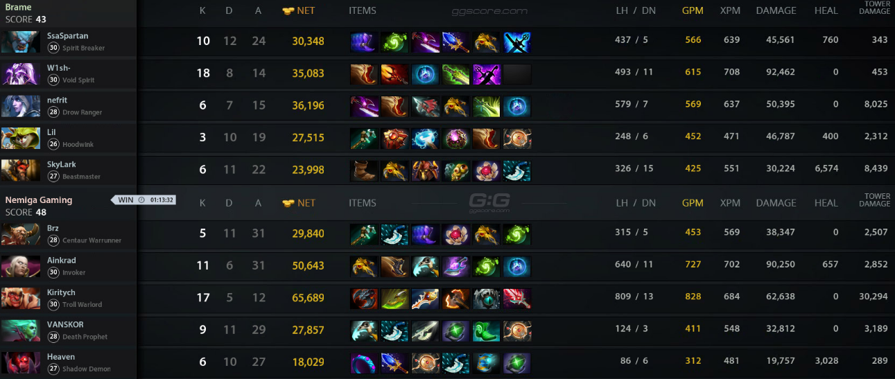 Nemiga сумела выиграть карту у Brame на Dota 2 Champions League Season 7, отыграв отставание в 15 000 золотых. Параллельно с отставанием, у белорусской команды не было бараков на двух сторонах.