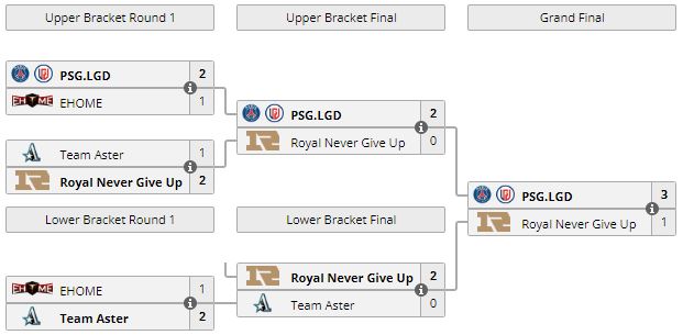 За победу в турнире PSG.LGD заработал $50 тыс. и 250 DPC-очков. RNG получила $25 тыс. и 130 баллов DPC.