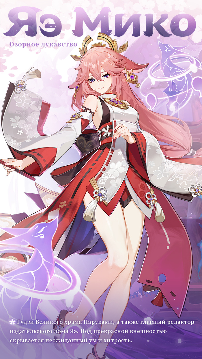 Разработчики Genshin Impact представили нового персонажа — Яэ Мико. По информации, пестрая девушка с волосами цвета “баблгам” появится в игре с дополнением 2.5.