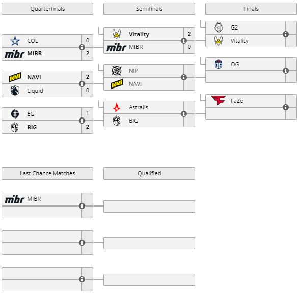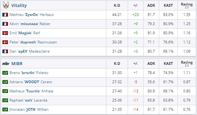 В следующем матче Vitality сыграет с G2. Победитель серии получит слот на BLAST Premier: Spring Finals. MIBR упала в нижнюю сетку.