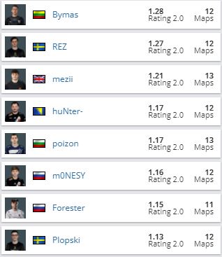 Отметим, вторым по рейтингу стал игрок NiP Фредрик REZ Стернер — 1.27. Снайпер G2 Илья m0NESY Осипов по этому показателю лишь шестой — 1.16.