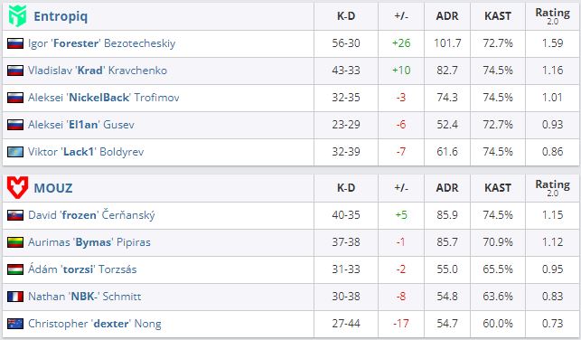 Entropiq обыграла MOUZ в матче группы “А” на ESL Pro League Season 15. Встреча завершилась “сухой” победой СНГ-коллектива (Dust2 — 16:13, Mirage — 16:10).