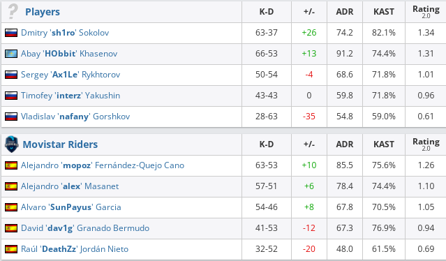 Players — Movistar Riders — 1:2 (Inferno — 14:16, Mirage — 16:7, Ancient — 9:16);