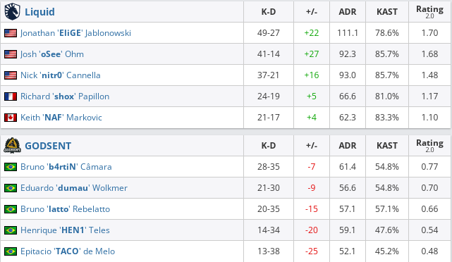 Liquid — GODSENT — 2:0 (Ancient — 16:4, Dust2 — 16:6).