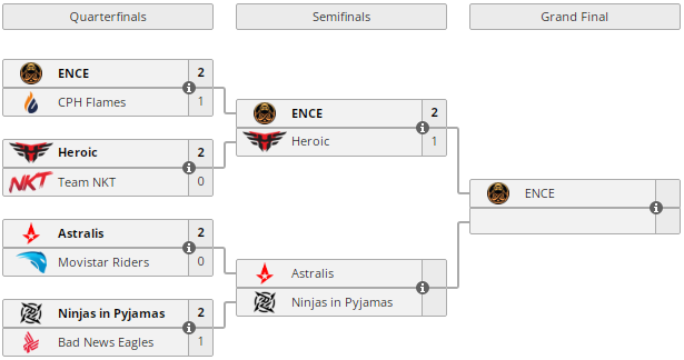 Heroic заняла 3-4 место на турнире, заработав $7500. 30 апреля Astralis и NiP сразятся за второй слот в гранд-финале турнира.