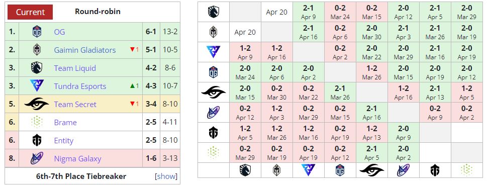 Поражение откинуло Entity в зону вылета. Коллектив сыграет с Brame за право участвовать в первом дивизионе DPC в следующем сезоне. OG все еще занимает первую строчку в таблице.