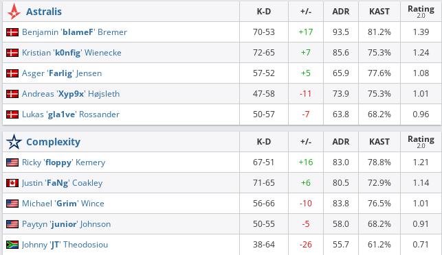 Astralis — Complexity — 2:1 (Dust2 — 13:16, Nuke — 16:10, Ancient — 16:14);