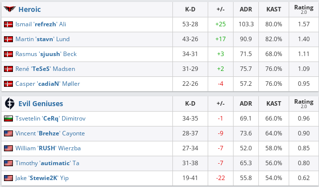 Heroic — Evil Geniuses — 2:0 (Inferno — 16:6, Nuke — 16:12)