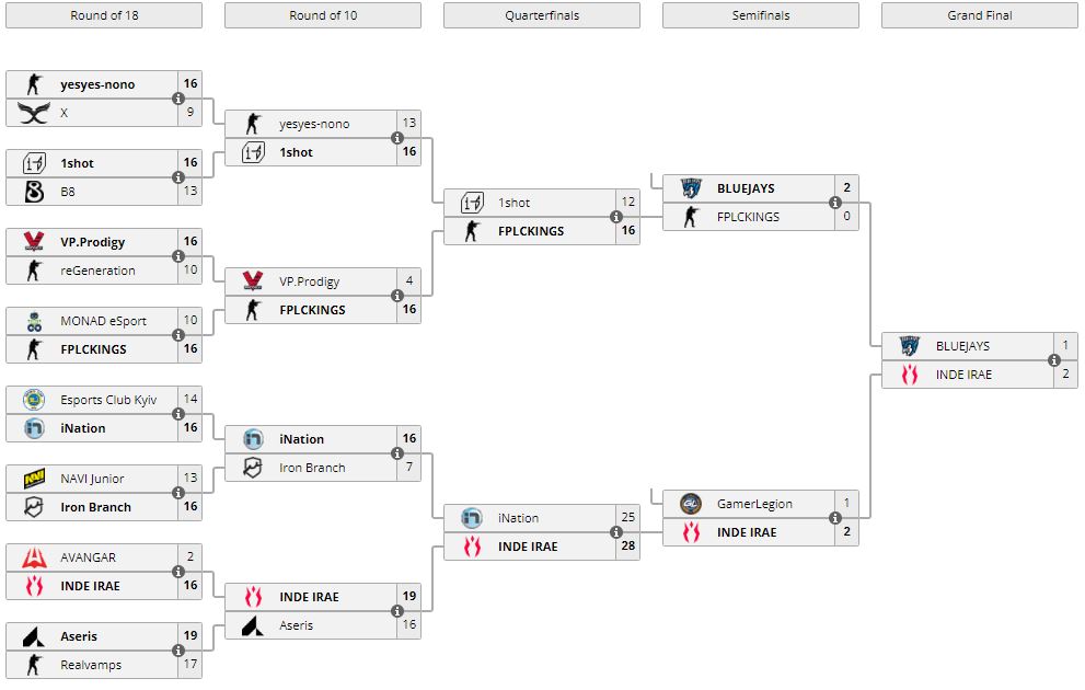 INDE IRAE стала триумфатором ESEA Cash Cup: Europe — Spring 2022 #4. В гранд-финале турнира коллектив обыграл BLUEJAYS — 2:1 (Ancient — 16:9, Inferno — 11:16, Vertigo — 16:10). Отметим, за INDE IRAE выступает белорус — Игорь lollipop21k Солодков.
