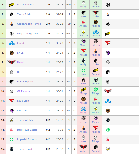 14 мая стартовала стадия “Легенд” на PGL Major Antwerp 2022. Пока лидирующие строчки заняли NaVi, Team Spirit, Copenhagen Flames и NiP. Эти коллективы поборются за выход в плей-офф уже во второй игровой день. Куда печальнее ситуацию у Vitality, Liquid, Bad News Eagles и Imperial. Двое из этих коллективов покинут турнир уже 15 мая. Полная таблица с результатами доступна ниже.