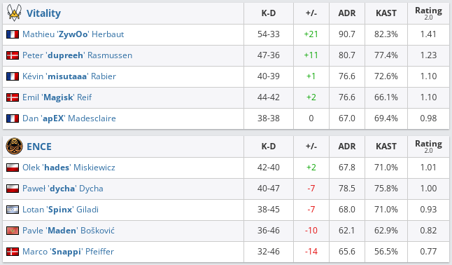 Team Vitality — ENCE — 2:0(Overpass — 16:10, Nuke –19:17).