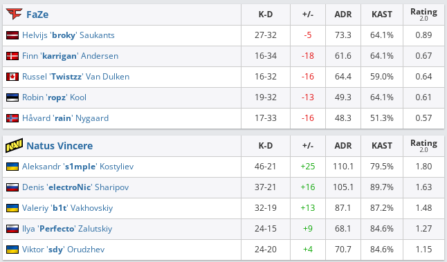 NaVi — FaZe Clan — 2:0 (Dust2 — 16:4, Inferno — 16:1);