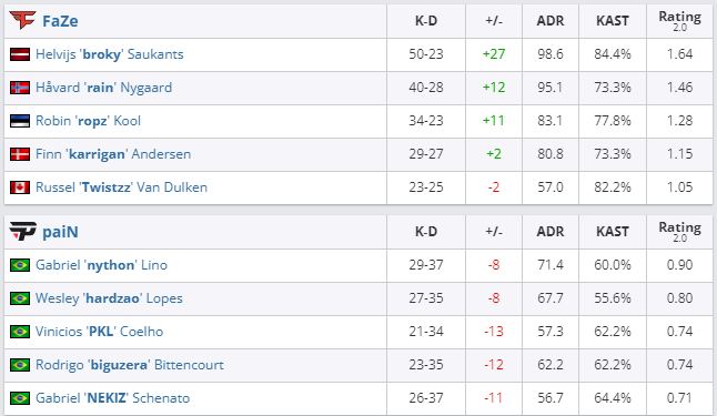 FaZe Clan без проблем обыграл paiN Gaming в первом матче на BLAST Premier: Spring Finals 2022. Встреча завершилась “всухую” — 2:0 для коллектива Финна karrigan Андерсена (Ancient — 16:7, Inferno — 16:6).