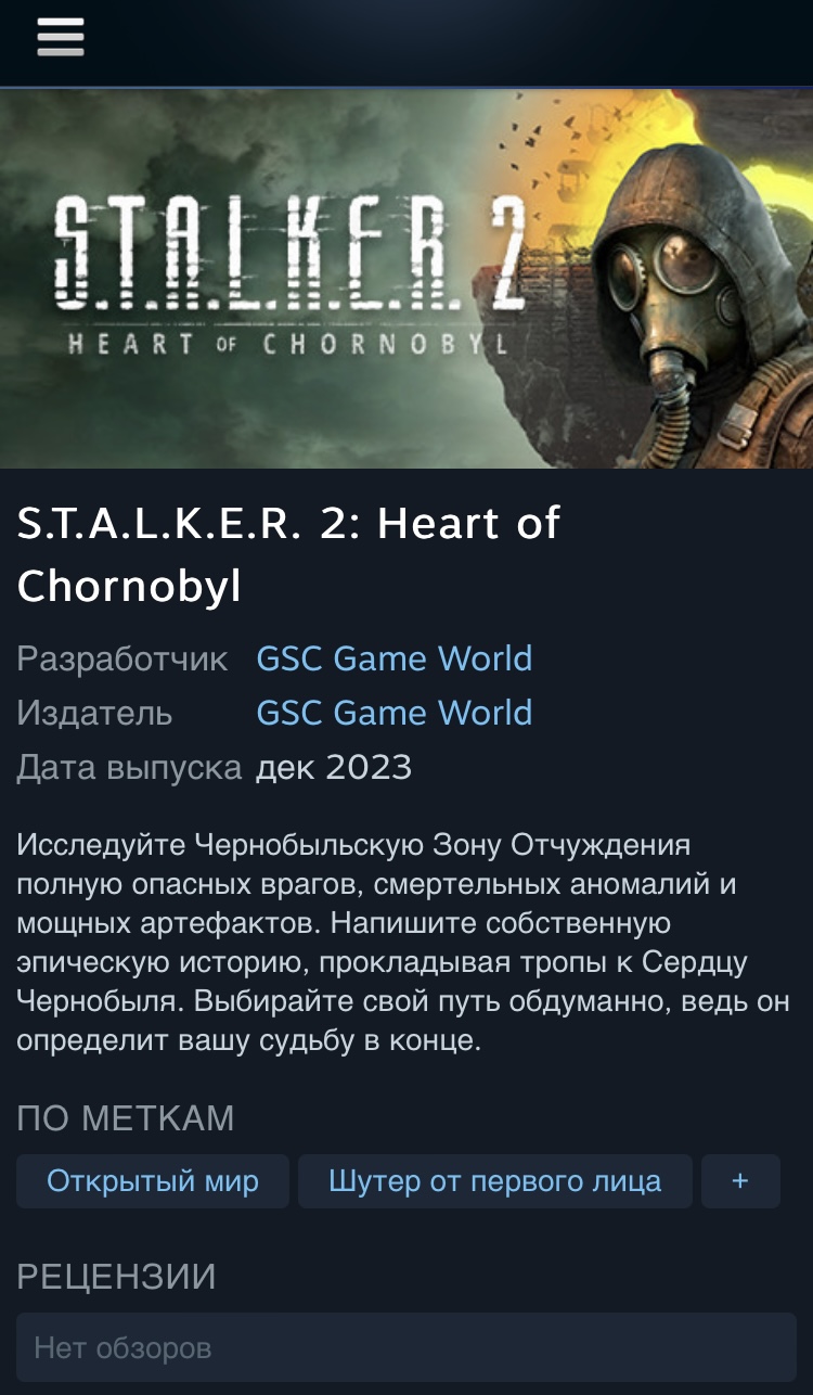 На странице Stalker 2 в Steam появилось предполагаемое временное окно выхода игры. Пока в магазине указан декабрь 2023 года.