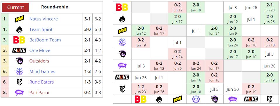 Благодаря победе Spirit теперь делит первую строчку турнирной таблицы с NaVi. Rune Eaters упали в зону вылета.