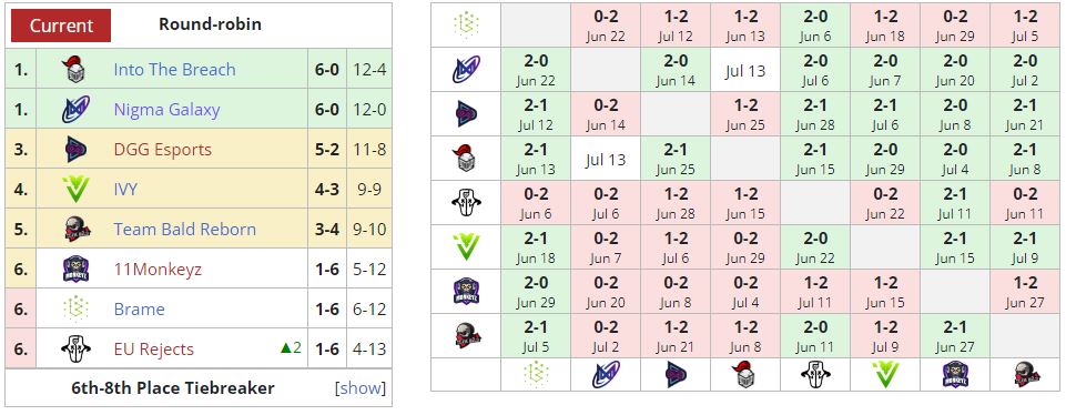 DGG заняла итоговую третью строчку в таблице. Brame сыграет в переигровках с EU Rejects и 11Monkeyz за право остаться во втором дивизионе.