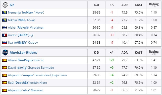 G2 с поражения начала выступление на IEM Cologne 2022 по CS:GO. В дебютном для себя матче турнира коллектив уступил Movistar Riders — 0:2 (Vertigo — 12:16, Inferno — 9:16).