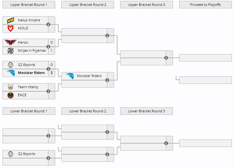 G2 упала в нижнюю сетку, где сыграет с проигравшим пары Vitality — ENCE на вылет с турнира.