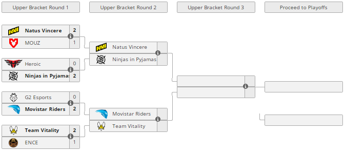 Второй раунд в группе Vitality проведут в борьбе с Movistar Riders, а ENCE поборется на право остаться на турнире с G2.