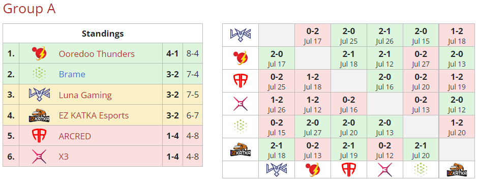 Завершились все матчи группы А турнира Dota 2 Champions League Season 13. Команды Ooredoo Thunders и Brame вышли в верхнюю сетку плей-оффф, коллективы Luna Gaming и EZ KATKA Esports продолжат свое выступление в нижней сетке плей-офф, а составы ARCRED и X3 покинули турнир.