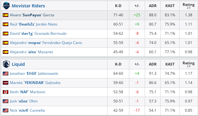 Movistar Riders предстоит поединок с FaZe Clan в полуфинале турнира. Liquid выбыла на 5-6-м месте, заработав $40 000.