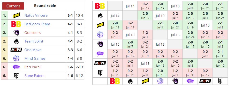 Победа позволила NaVi подняться на первое место турнирной таблицы. Rune Eaters упали на последнюю строчку дивизиона.
