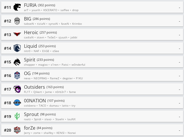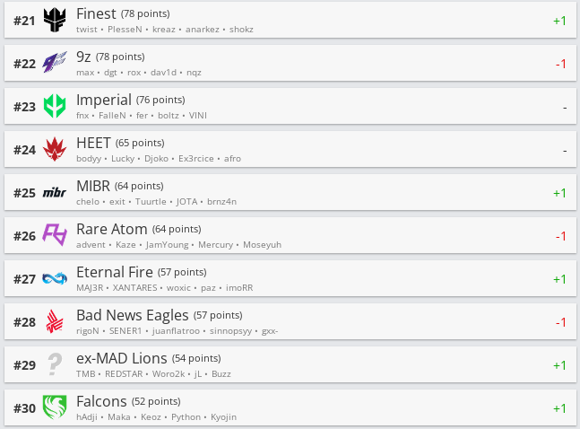 Белорусская команда SHIPACHI опустилась на одну строчку в рейтинге региона СНГ. Теперь ребята занимают 22 позицию.