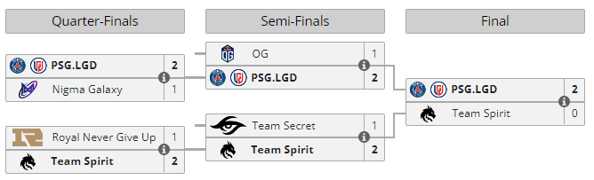 В финале Riyadh Masters 2022 китайский коллектив PSG.LGD со счетом 2:0 обыграл Team Spirit и стали чемпионами турнира, получив $1 500 000. Российской команде за втрое место досталось $750 000.