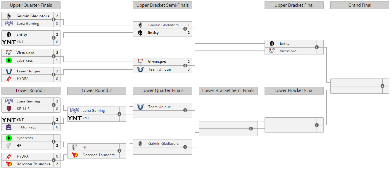 В верхней сетке (проигравшие команды опустились в нижнюю сетку):