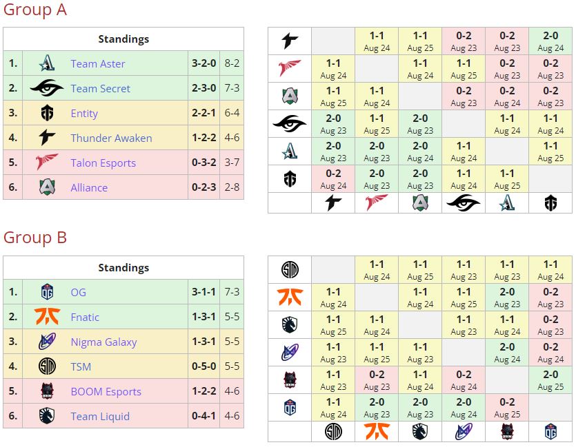 Отметим, плей-офф турнира стартует уже 25 августа. В 13.10 Secret сыграют против OG, а Fnatic сразятся с Aster.