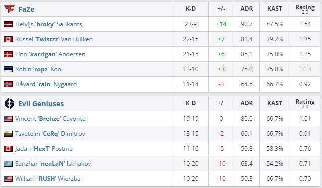 FaZe Clan одержал уверенную победу в дебютном матче на BLAST Premier: Fall Groups 2022. Коллектив Финна karrigan Андерсена обыграл Evil Geniuses на Inferno — 16:8.