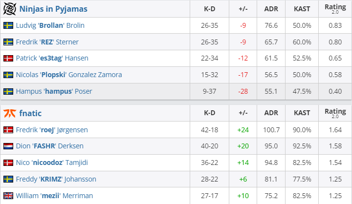 Команда Fnatic разгромила соперников из NiP в рамках матча группы А на ESL Pro League S16. Коллектив Фредди KRiMZ Йоханссона уничтожил шведов со счетом 16:4 на двух картах.