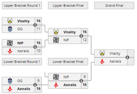 Стартовал решающий матч в рамках группы “А” на BLAST Premier: Fall Groups 2022. В нем встречаются Vitality и Astralis. Победитель встречи пройдет в финал Play-In стадии.