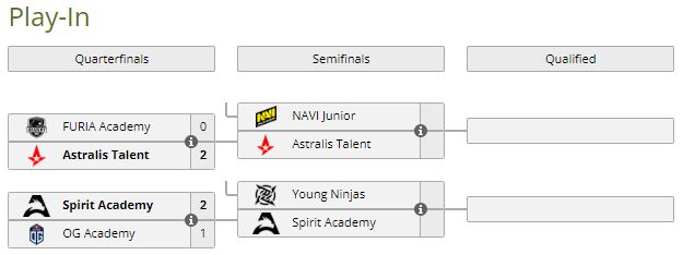 Стартовал второй игровой день плей-ина на We Play Academy League Season 5 по CS:GO. В первом матче игрового дня сражаются Astralis Talent и NAVI Junior. В 19.00 сойдутся Spirit Academy и Young Ninjas.