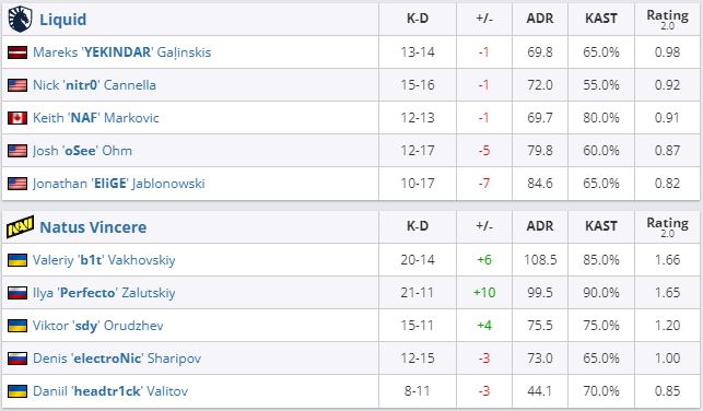Natus Vincere заняли итоговое первое место в группе “B” на BLAST Premier: Fall Groups 2022. В последнем матче квартета “рожденные побеждать” оказались сильнее Liquid на Dust2 — 16:4.