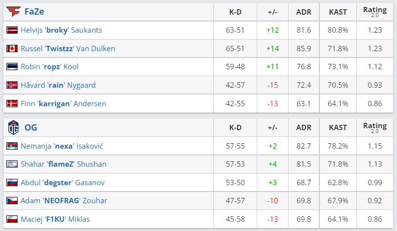 В полуфинале стадии плей-ин BLAST: Premier Fall Groups 2022 состав OG со счетом 2:1 обыграл FaZe Clan.