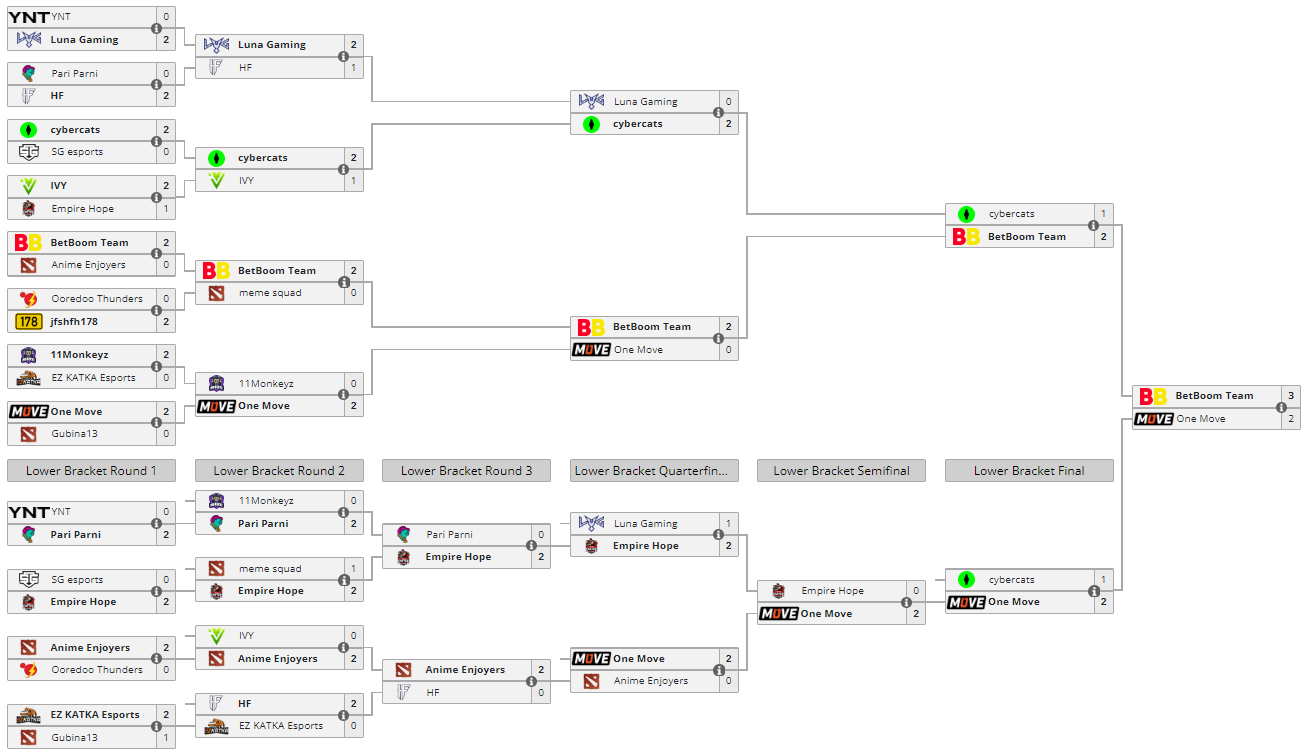 Dota 2 Champions League Season 14 проходил с 15 по 27 августа. 16 команд боролись за призовой фонд в размере $50 000. BetBoom Team заняла первое место и заработала $20 000, One Move забрала с собой серебро и $10 000.